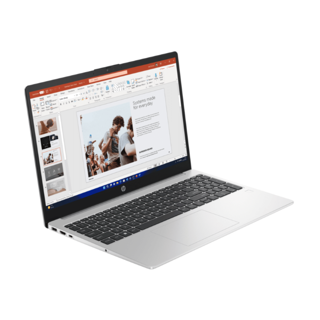 La pantalla 15.6” ofrece un espacio de trabajo amplio y cómodo, ideal para documentos largos, hojas de cálculo, clases virtuales y navegación extendida. Su diseño ligero y elegante en color Silver facilita la movilidad sin sacrificar durabilidad.